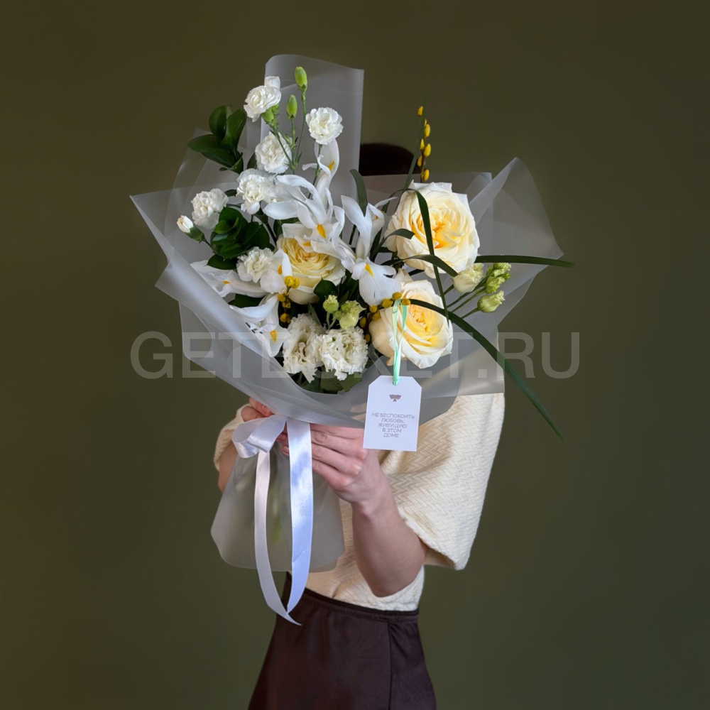 Букет из белых эустом, гербер и гвоздик с розами9 990 ₽Букет из белых эустом, гербер и гвоздик с розами 9 990 ₽ -