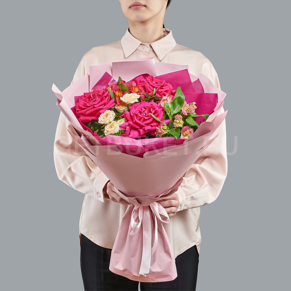 Букет из роз и альстромерий