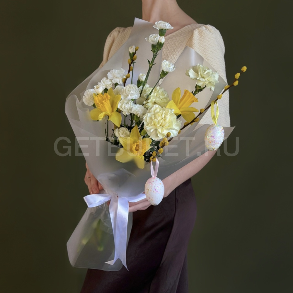 Букет из нарциссов, гвоздик и вербы3 945 ₽Букет из нарциссов, гвоздик и вербы 3 945 ₽ -